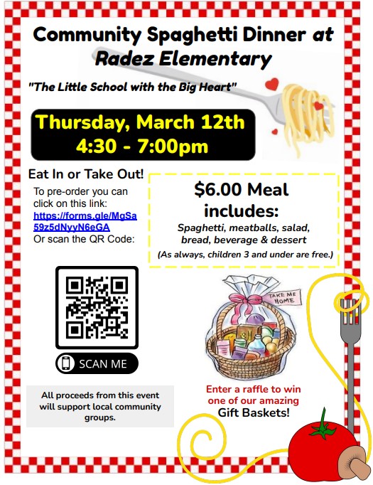 Dear Families, Our school will be hosting our annual Community Spaghetti Dinner on Thursday, March 12th, and we are asking for your help! If you are able, please consider donating one of the follow...